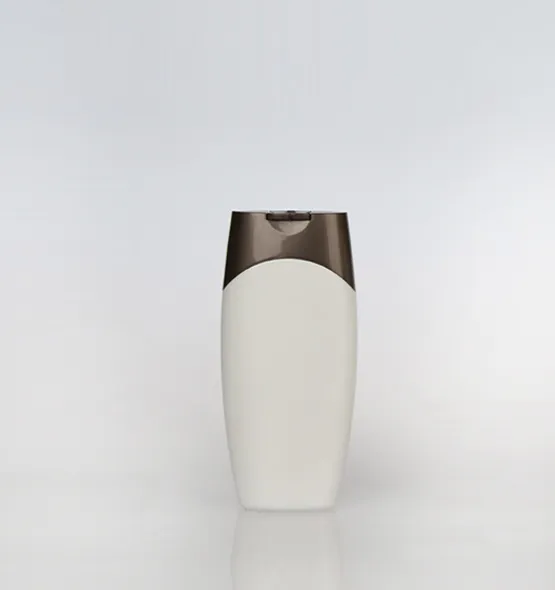 Cosmetic bottle 200 ml. from the "Combo" series. The bottle has a large area for the label. Smooth shape and flat cap. allow the bottle to stand upside down. Thin and stable bottle allows you to save space in the bathroom and on the shelf.