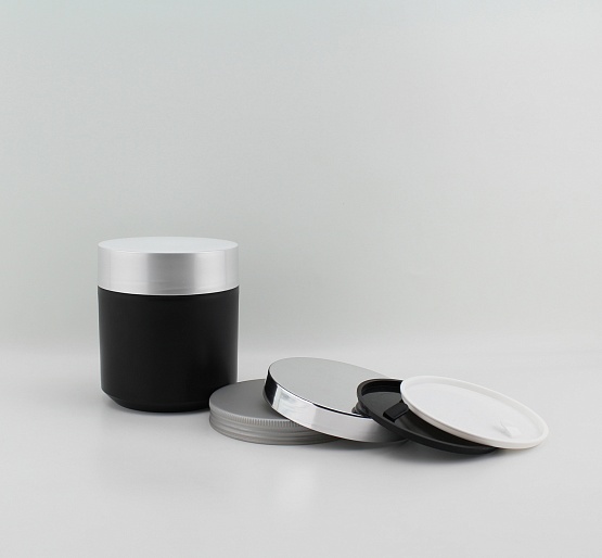 A 400 ml cylindrical jar with a spectacular design at the bottom, suitable for both mass-market products and professional hair and body care lines, as well as sugaring and depilation products. Looks larger than competitive products on the shelf due to the high lid. Can be a series with both Futura bottles and any other cylindrical bottles. Large surface for silk-screen printing or a circular label and a label on the lid of the jar.